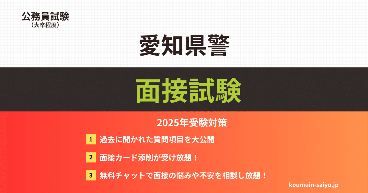 「初めて愛知県警の面接を受ける人」、「これから面接対策を始める人」は特に参考にしてください。